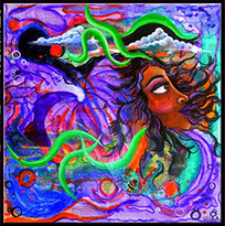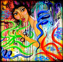 Take Me On A Magic Carpet Ride 24x24 acrylic on collage canvas